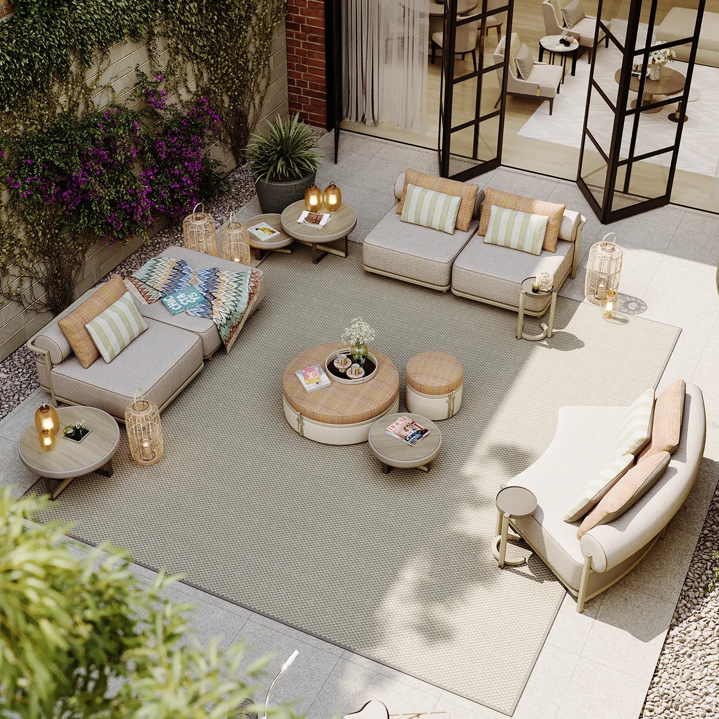 The real showstopper here is our SAINT TROPEZ Round Sofa. Designed with outdoor entertaining in mind, it has two modules that can be placed as one circular meeting point or set up as two separate seats.