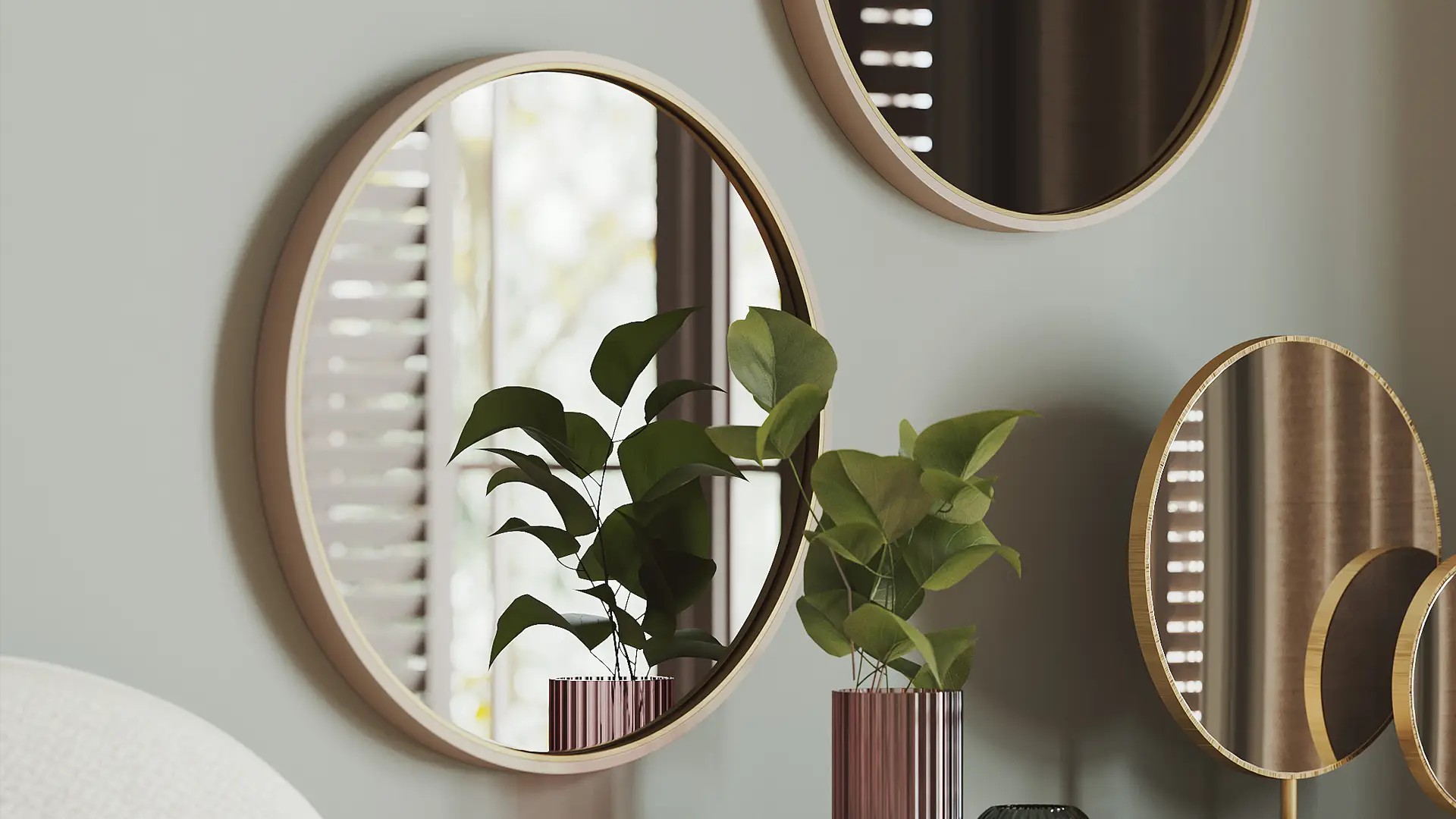 The minimal DURBAN III mirror takes the basic form of a wall-hung looking glass and elevates it with bronze mirror, a lacquered-wood frame and an interior trim of brushed brass.