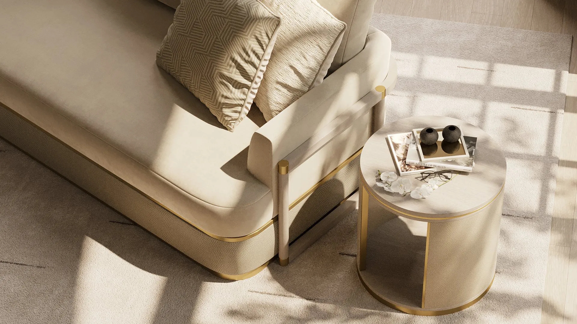 A distinctive squared base and stem sets the HOBART floor lamp apart. Covered in sections of faux leather, intersected with seams of brushed brass, and topped off with a conical double-silk shade, this design celebrates textural difference.