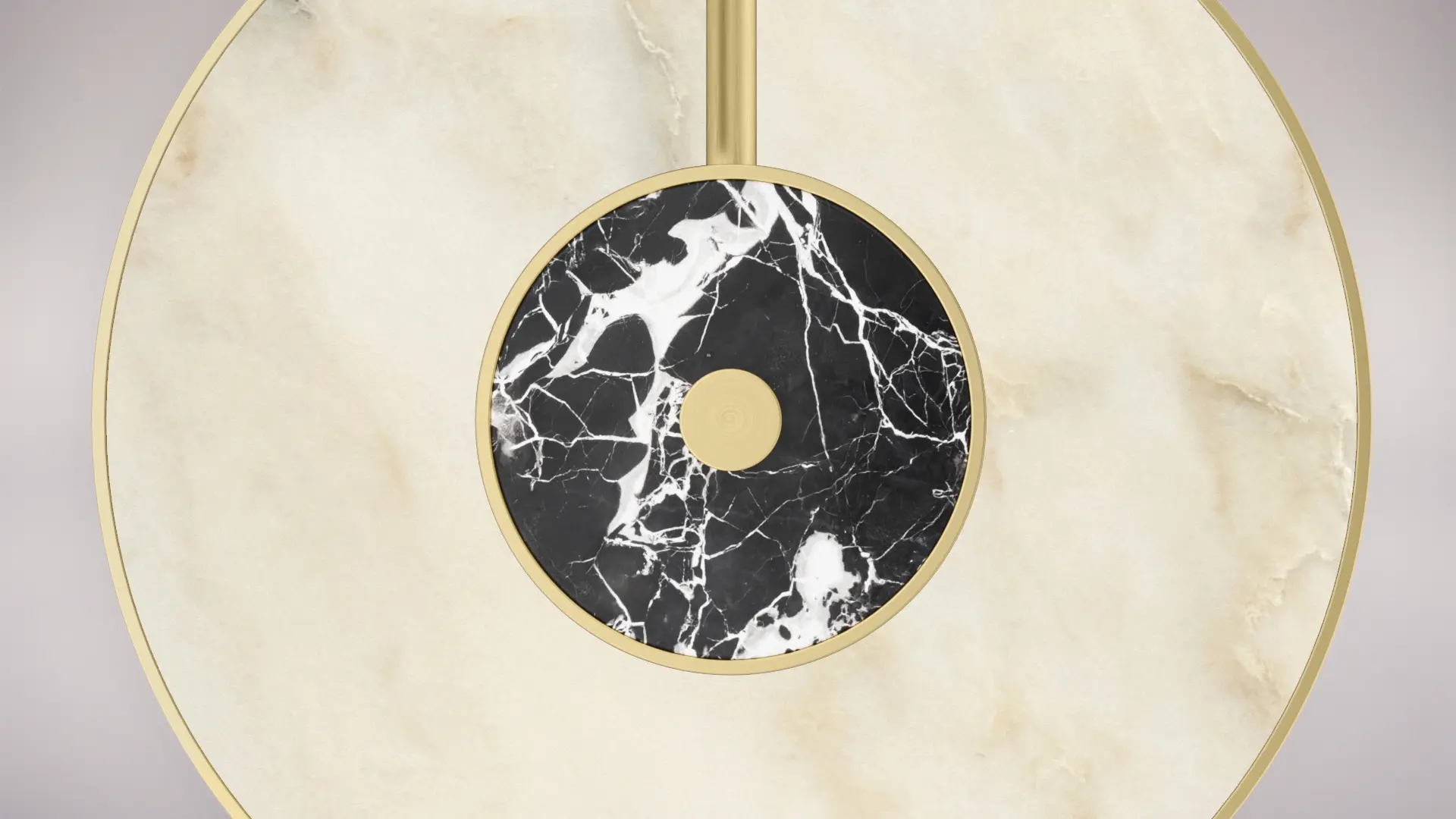 Circles are given a fresh outlook through the use of different materials in the KANDY Wall Lamp, which incorporates contrasting marbles, brushed brass and wood veneer.