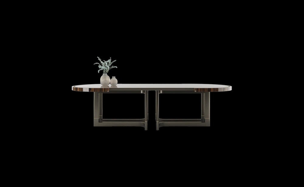 "The STOWE Dining Table takes centre stage thanks to its commanding form. The solid wood structure is amplified by soft details such as subtly curved legs and brushed brass highlights.